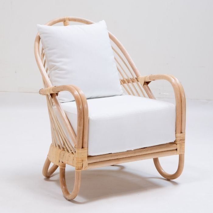 כורסא מבמבוק וראטן טבעית ומלאת שיק, עשויה בעבודת יד.