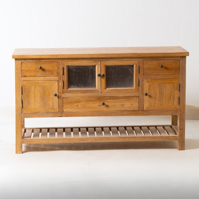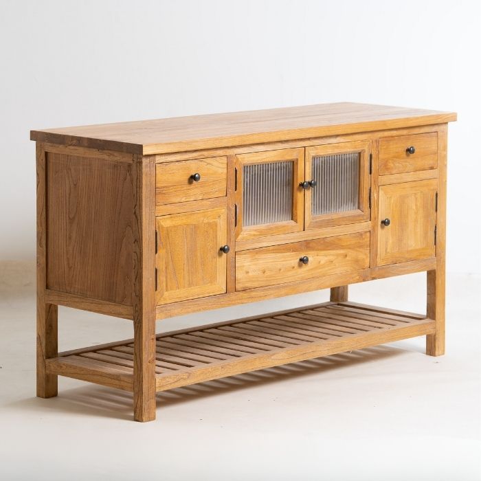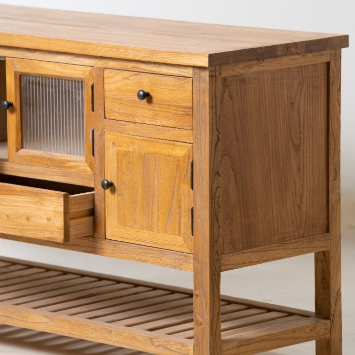 שידת עץ בוקיצה ממוחזר, עיצוב טבעי וחמים עם נוכחות קלאסית.