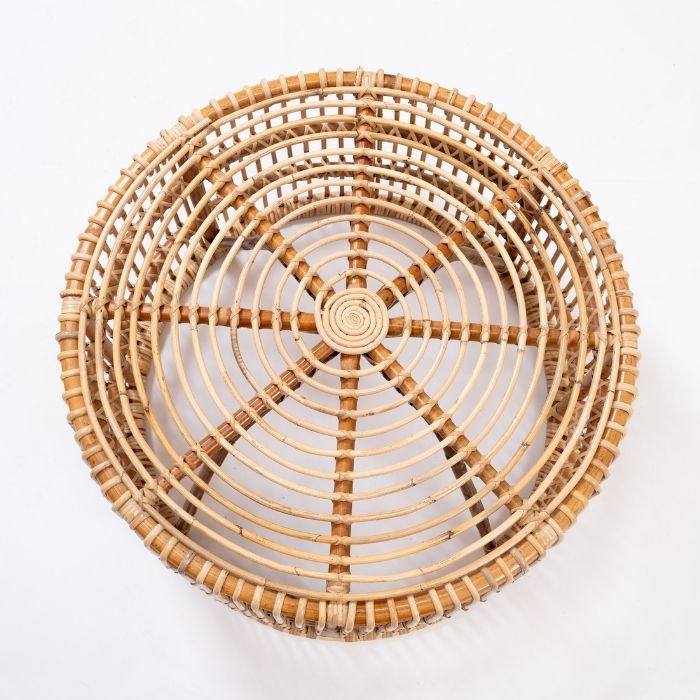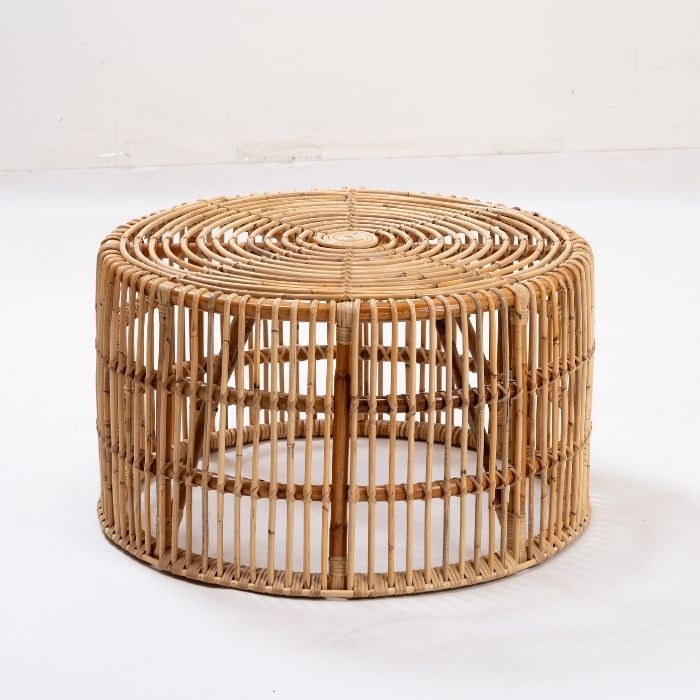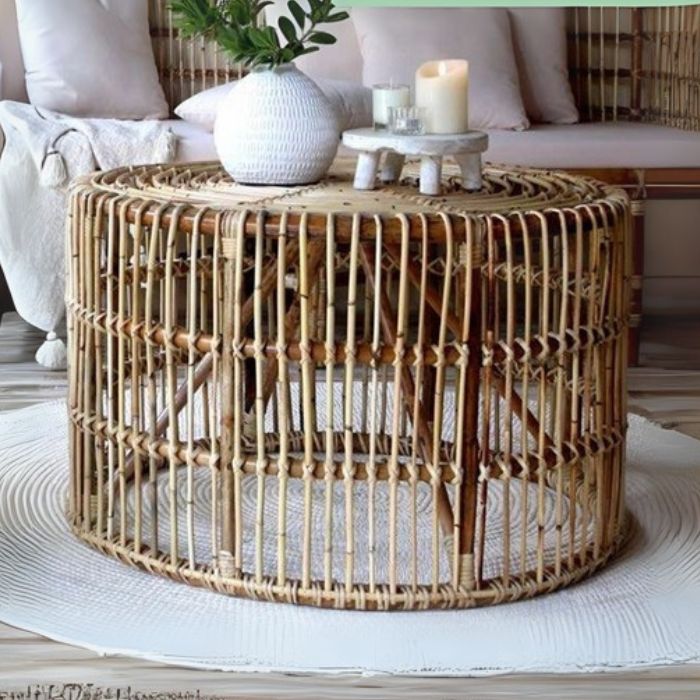 שולחן סלון עגול מבמבוק עם שילובי ראטן טבעי, פריט מלא אופי שמכניס חמימות וטקסטורה טבעית לכל חלל.