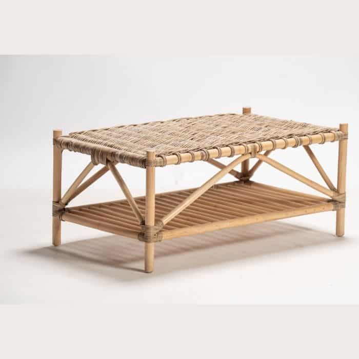 שולחן עשוי ראטן קובו טבעי בעבודת יד. פריט ייחודי עם נוכחות טבעית וחמימה.