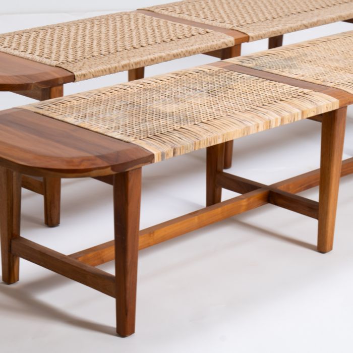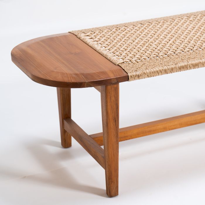 ספסל מעץ טיק וראטן, פשטות אלגנטית עם ניחוח טבעי