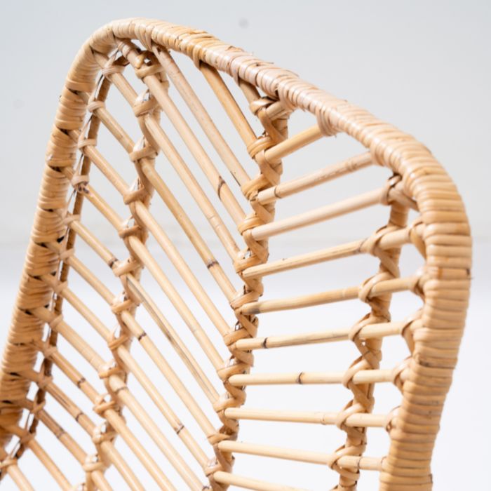המושב והמשענת עשויים ראטן סינטטי איכותי בעבודת יד, בצבע טבעי חמים, המקנה לכל חלל תחושת חמימות ונגיעה טרופית.
