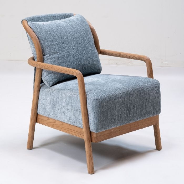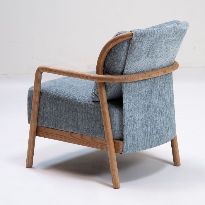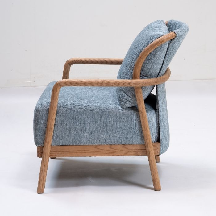 ידיות העץ המעוגלות משלימות את העיצוב האלגנטי של הכורסא.